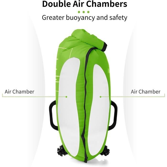Essentielle pour nager en eau libre en toute sécurité ! Cette bouée Naturehike fait office de sac étanche de 28L et offre une flottabilité de 18 kg. Elle a 2 airbags indépendants — si l’un fuit, l’autre assure la sécurité. Tu peux y ranger tes affaires (vêtements, clés, etc.) en restant au sec. La ceinture est ajustable et la bouée est visible grâce à sa couleur fluo. Parfaite pour les triathlètes, les kayakistes ou les nageurs occasionnels. Pense à tester l’étanchéité avant use !
